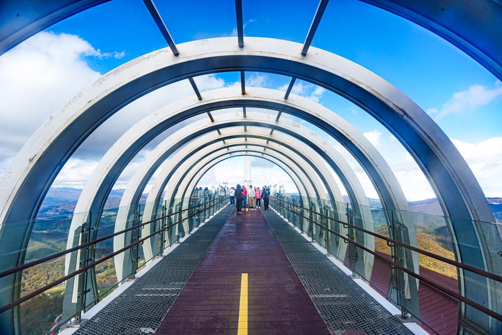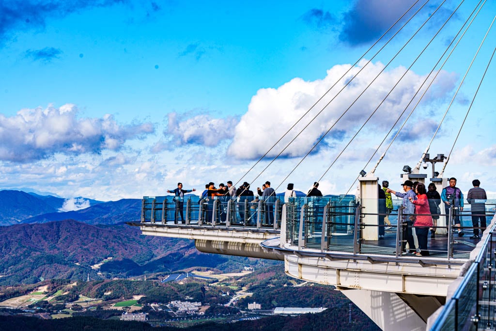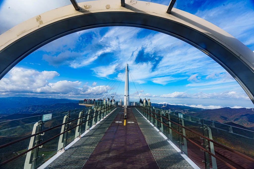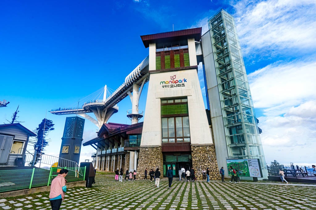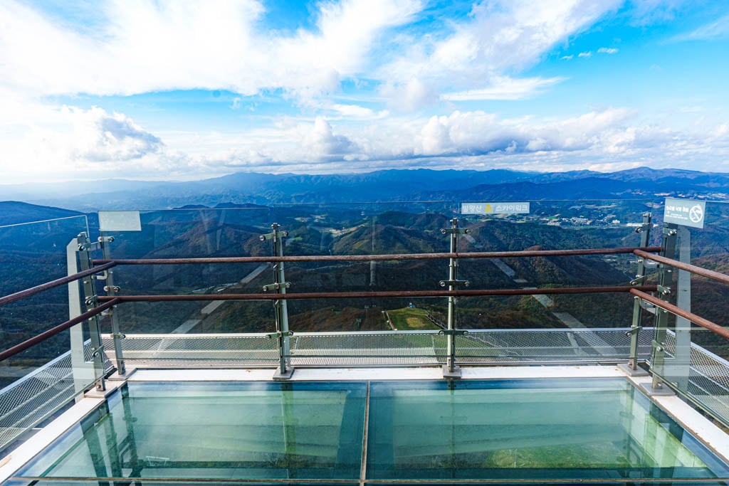 발왕산케이블키를 타고 정상에 도착 후 사람들의 관심은 건물 4층에 있는 발왕산스카이워크이다. 여기는 엘리베이터를 타고 4층에서 내리면 된다.