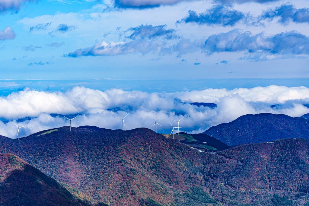 발왕산 스카워워크에서 바라본 안반데기 풍력발전기와 운해 풍경을 망원으로 담아보았다.