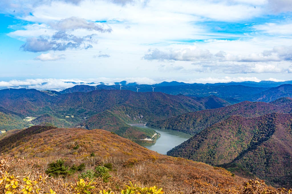 정상 전망대에서 배려다보는 풍경이 멋진데 북쪽으로 강릉근처 안반데기가 보이고 엄청나게 많은 풍력발전기가 보인다. 그 아래로 커다란 저수지(?)가 보이는데 지도를 보니 도암호라고 한다.