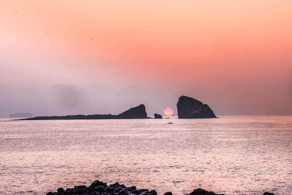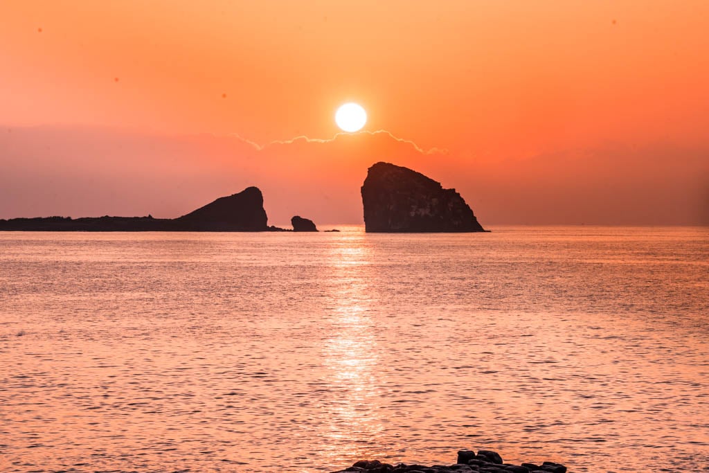 아주 정확히 형제섬 바위 가운데로 태양이 올라오는 것을 담지는 못했지만 그 근방으로 오르는 해를 잡을 수 있었다.