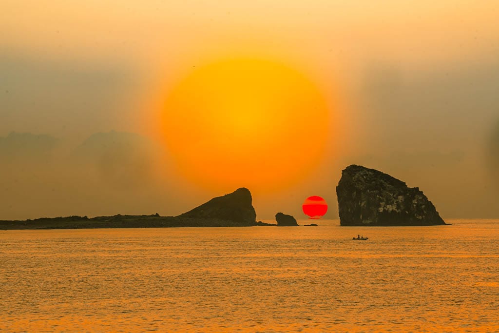 하지만 형제섬 위 하늘은 진한 회색 구름으로 가득차 있어 해는 잠깐 얼굴을 비추고, 사그러져 버렸다.