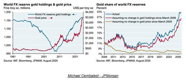 JP Morgan의 자료에 따르면, 금 보유비중의 상승은 오롯이 금 가격의 상승분으로 설명된다는 것이다.