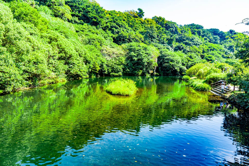 입구에서 울창한 난대림 산책로를 따라 약 1km를 걷는다. 현무암으로 깔린 평탄한 길이라 누구나 편하게 걸을 수 있다. 계단도 거의 없어서 나이 드신 분들이나 아이들과 함께 방문하기도 좋다.
