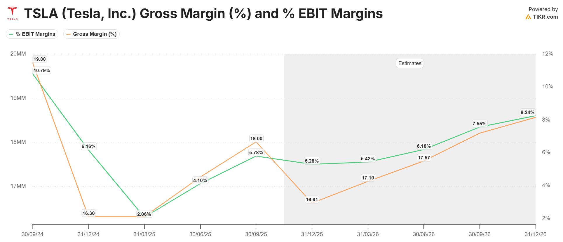 실제로 테슬라의 최근 12개월 자동차 부문 매출은 716억 달러로, 2분기(704억 달러) 대비 소폭(2% 미만) 증가했다. 큰 의미는 없지만 소폭 개선된 것이다. 물론 10월 인도 실적이 이미 시장의 기대를 반영했을 수 있다. 다만 EV 세제 혜택 종료에 따른 단기 수요가 향후 12개월간 반복될지는 의문이다. 그럼에도 2024년 9월 이후 3분기 연속 전분기 대비 매출 감소세를 끊어냈다는 점에서, 강세론자들은 판매의 경기순환적 반등이 이어질 수 있다는 기대를 걸고 있다. 이는 GM과 Ford의 실적 개선과 맞물려 투자자들에게 어느 정도 정당성을 제공한다.