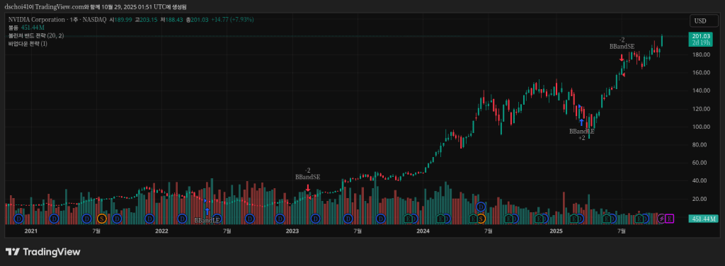- 2025년 10월 기준, 엔비디아 주가는 201.03달러로 사상 최고가를 기록하며 시가총액 4조 8,850억 달러에 도달했다.