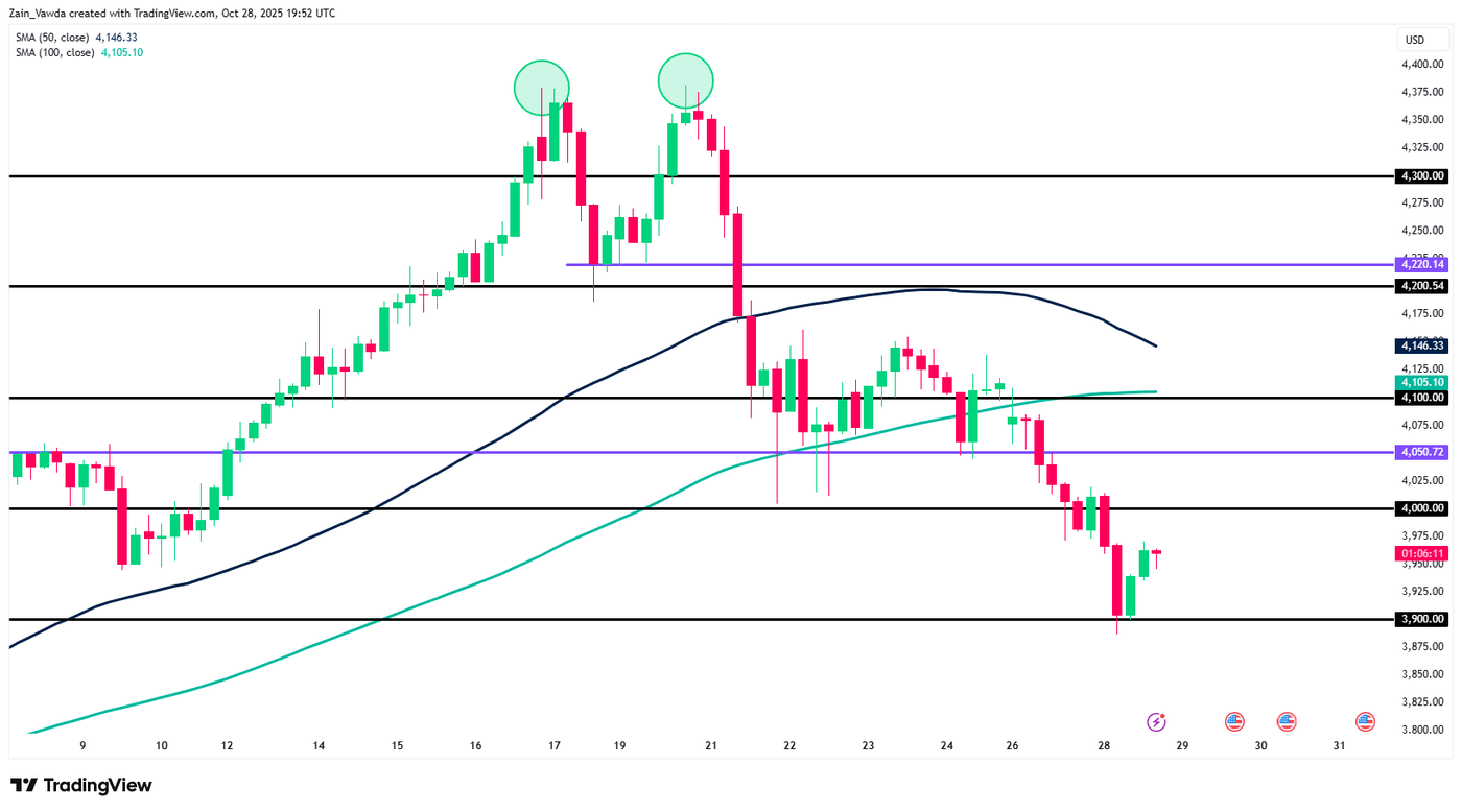 - 이 귀금속은 유럽 세션 저점에서 약 1.5% 반등해, 작성 시점 기준 $3960/온스선 부근에서 거래되고 있다.