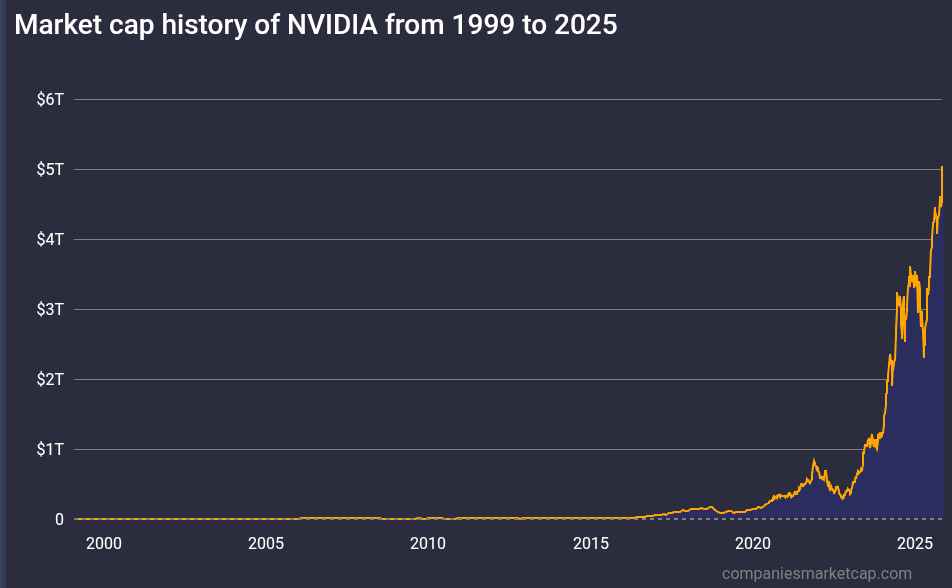 엔비디아가 시가총액 5조 달러를 돌파한 것은 전 세계 기업 역사상 최초의 기록이며, 이는 독일과 일본 같은 경제 대국들의 국내총생산(GDP)을 넘어서는 규모입니다. 이 수치는 엔비디아가 인공지능(AI) 생태계 중심에 있어 AI 기술 발전과 시장 확대를 주도하고 있음을 상징합니다[엔비디아 시총 5조달러 의미].