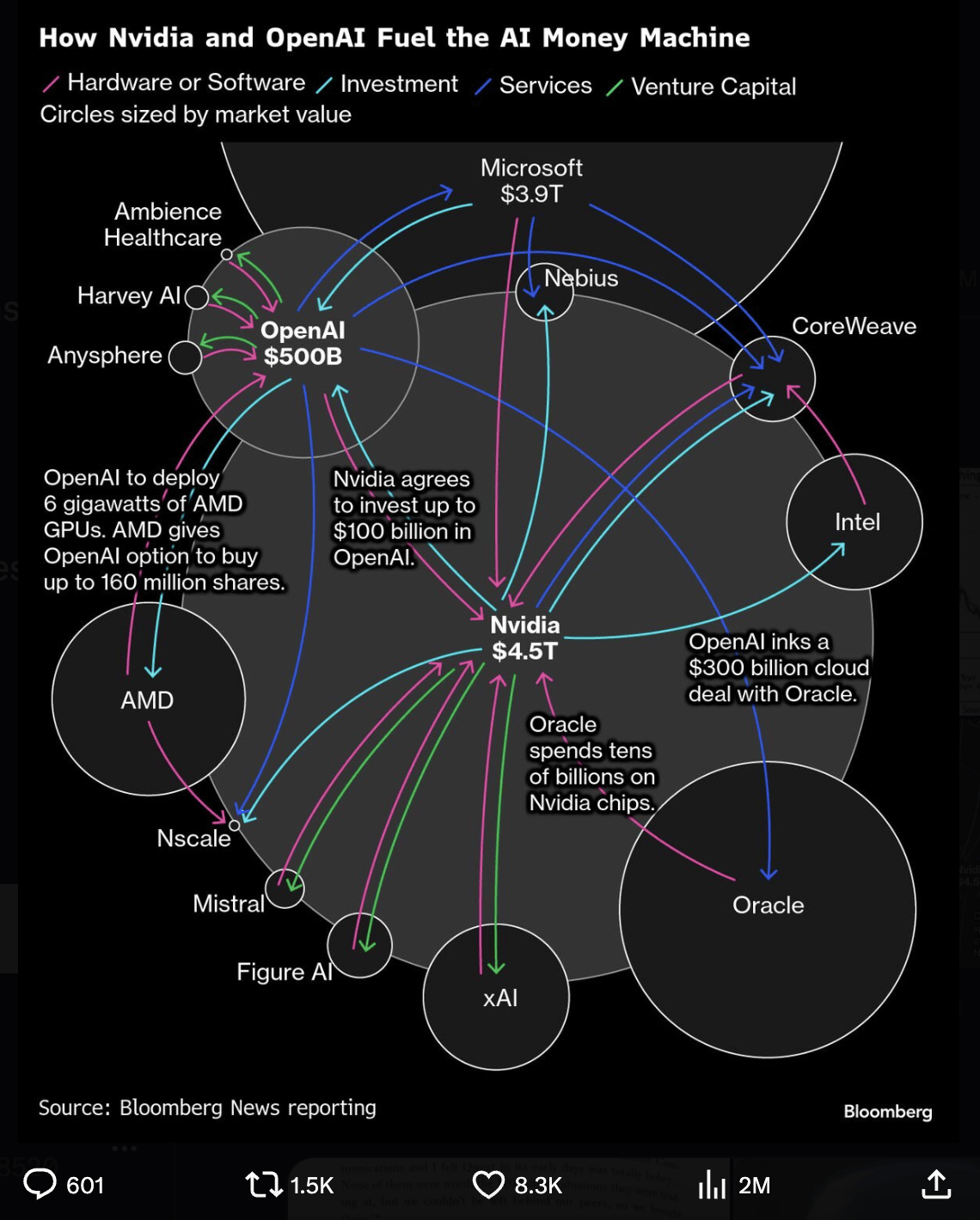 즉, 서비스 수요의 전반적인 확대라기보다는, 일부 기업들 사이에서 자금이 순환하며 만들어진 자기증식적 구조로, 결국 붕괴할 위험이 있다는 점을 시사한다. 이는 AI 투자가 무조건 나쁘거나, AI 붐이 반드시 실패로 끝난다는 뜻은 아니다. 닷컴버블 붕괴 이후 실패 위기에 처했던 기업들 중 상당수는 오늘날 매우 가치 있는 기업으로 성장했다. 그러나 지금은 관련 기업과 투자자들이 이 분야의 기회에 과도하게 들떠 있을 수 있다는 신호다.