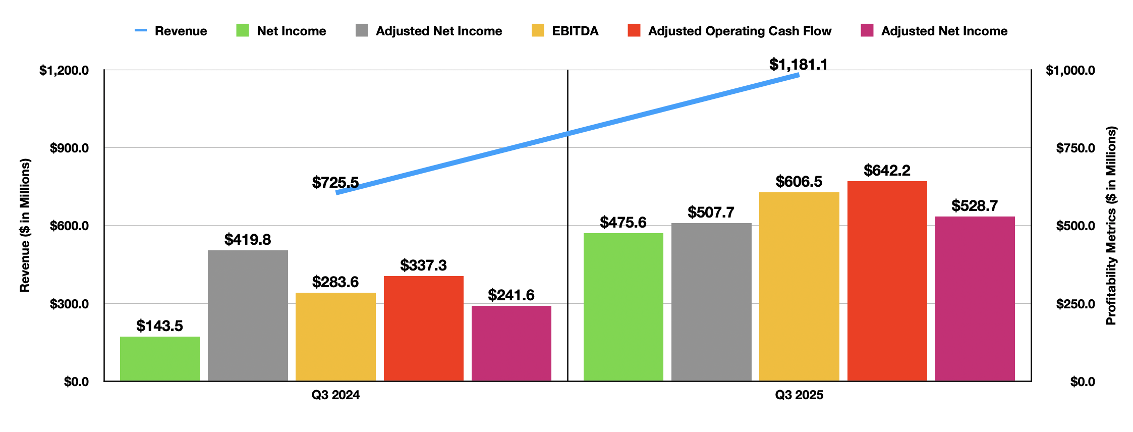 어떤 지표로 보더라도 팔란티어 테크놀로지스는 운영 측면에서 뛰어난 성과를 내고 있다. 이 점은 부인할 수 없다. 예를 들어, 2025년 3분기 회사 매출은 11억8000만 달러를 기록했다. 이는 전년 동기(7억2550만 달러) 대비 62.8% 증가한 수치다. 애널리스트 전망치도 8,950만 달러 초과 달성했다.