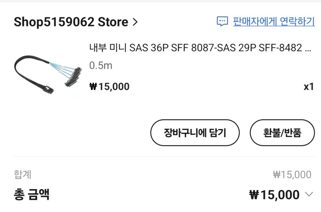 그래서 퍼플ㄹ렉터티에게 물어보니 SFF-8088(외부) 커넥터를 구매하라고 한다.