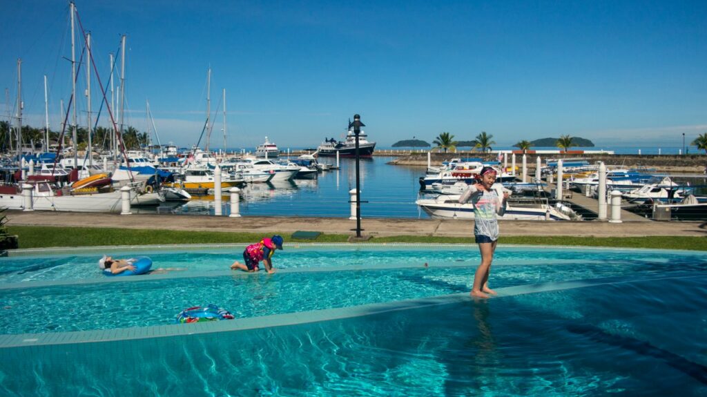 아래는 수트라하버에 묵었을 적에 수트라하버 선착위에 있는 수영장에서 가족들과 시간을 보내는 중에 같이 담아본 수트라하버 선착장 풍경입니다. 요트들이 즐비해서 엄청 부러웠던 기억이…